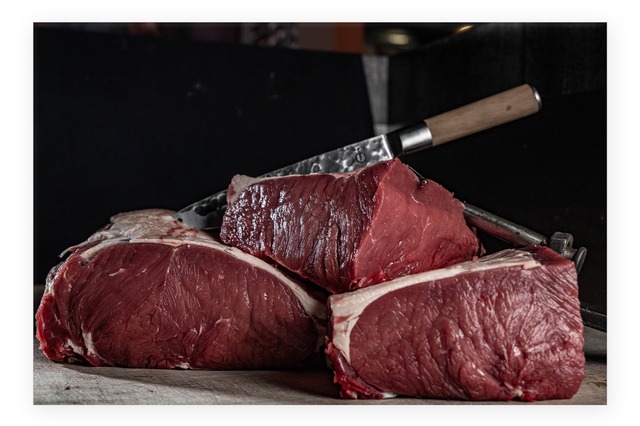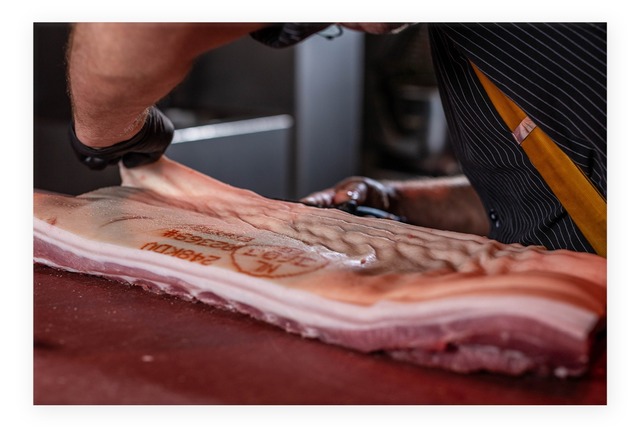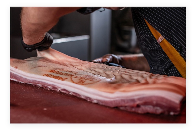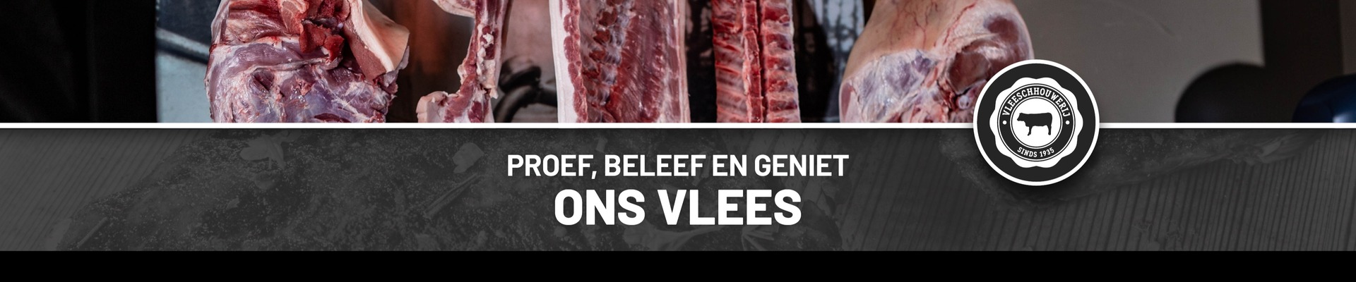 Bij de Vleeschhouwerij werken we uitsluitend met hele en halve karkassen. Een ambachtelijke werkwijze waarbij de herkomst van het vlees van cruciaal belang is. We denken na over het leven van de koeien, varkens en kippen, over het transport, de slacht en het creatief gebruiken van het hele dier. We verwerken het vlees van kop tot staart. Want we willen allemaal een kleine ecologische voetafdruk achterlaten. Wij kiezen daarom bewust. Met liefde voor de dieren, met liefde voor de smaak.